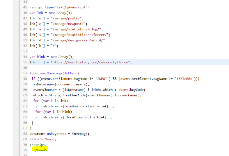 티스토리 단축키 만들기 스크립트 넣는 곳 ▼