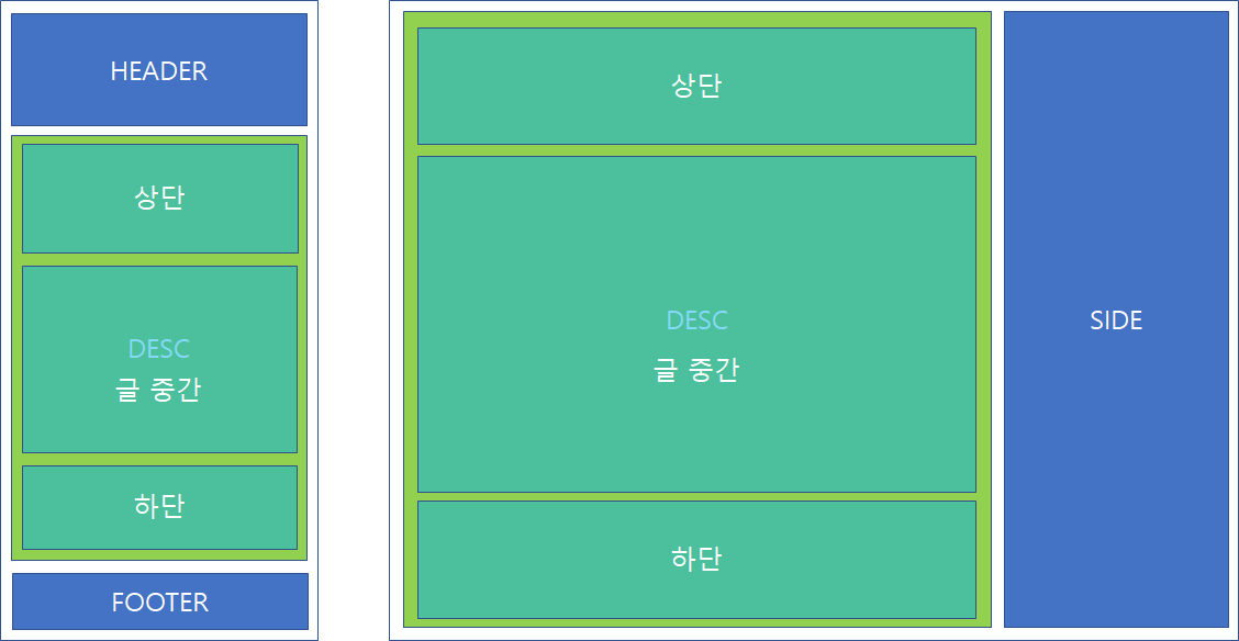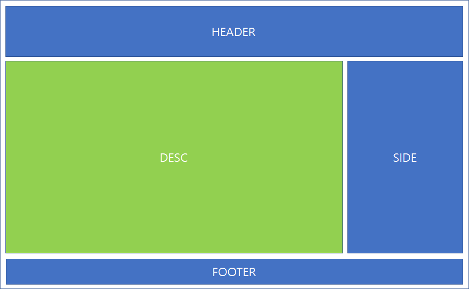 파란색 부분에 광고는 왜 웹스크립트만 넣어주면 되는 것인가? 바로 스마트폰으로 접속할 때 구조가 바뀌는 부분이기 때문입니다. 좌우가 줄어들면서 파란색 부분은 숨김 처리가 되기에 웹 환경에서만 신경을 써주면 됩니다. 그런데 여기서 짚고 넘어가야 하는 점이 있습니다. 대부분은 연두색 부분인 본문에서 광고수익이 나옵니다. 그 이유는 모바일 환경의 사용자가 많기 때문입니다. 따라서 DESC부분을 더 깊게 보겠습니다.