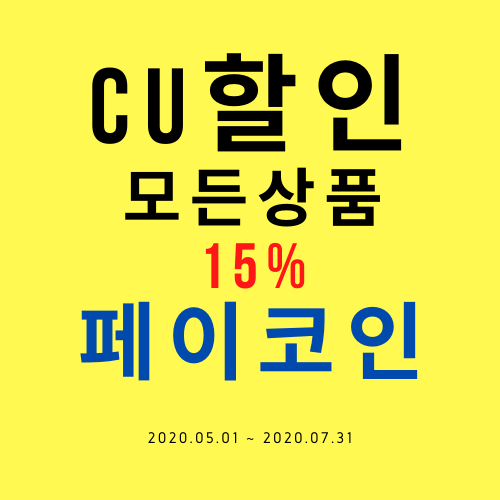 CU에서 페이코인으로 결제하면 모든 상품이 15% 할인을 한다고 합니다. 기간은 2020.05.01 ~ 2020.07.31까지 약 3달간 진행되며, 전국 CU편의점에서 페이코인 앱 바코드를 사용하여 간편하게 결제가 가능합니다. 15% 할인은 결제시점에 즉시 반영되는 실시간 캐시백 형태라고 합니다. 다만, 여기에는 한도가 있느데요. 1일 3회, 1회에 5000원 한도가 있습니다. 페이 코인을 이용하기 때문에 결제시점에 따라 사용되는 페이 코인의 수량이 다르다고 하네요. 일부 특수매장의 경우 행사가 제외되는 경우가 있으니 참고하시고, 결제 전에 페이 코인이 사용 가능한지 물어보는 것이 좋을 것 같습니다. 타결 제수단 복합 결제 시에는 할인이 적용되지 않는다고 하니 페이코인 단독 결제로 진행하시면 할인 혜택을 받으실 수 있습니다. 본 이벤트는 당사 내부 사정에 따라 조기 종료될 수도 있다고 합니다.