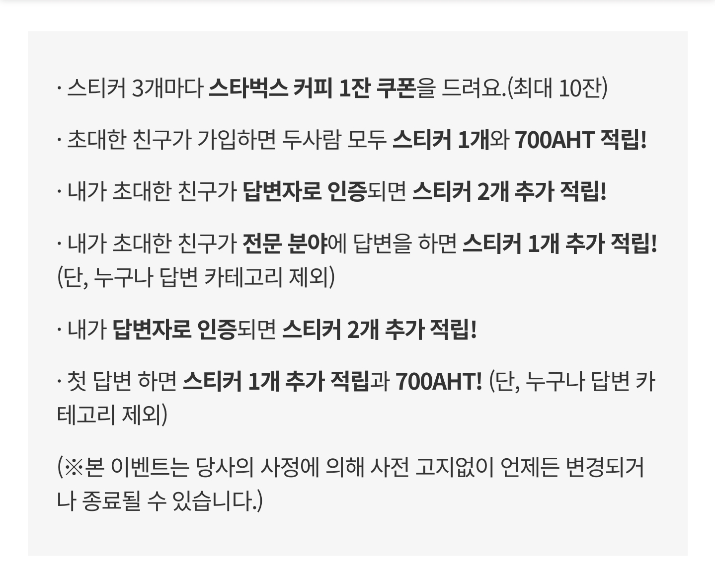 현재 아하에 가입해서 스티커 3장을 모을 때마다 스타벅스 쿠폰 이벤트를 진행 중입니다.