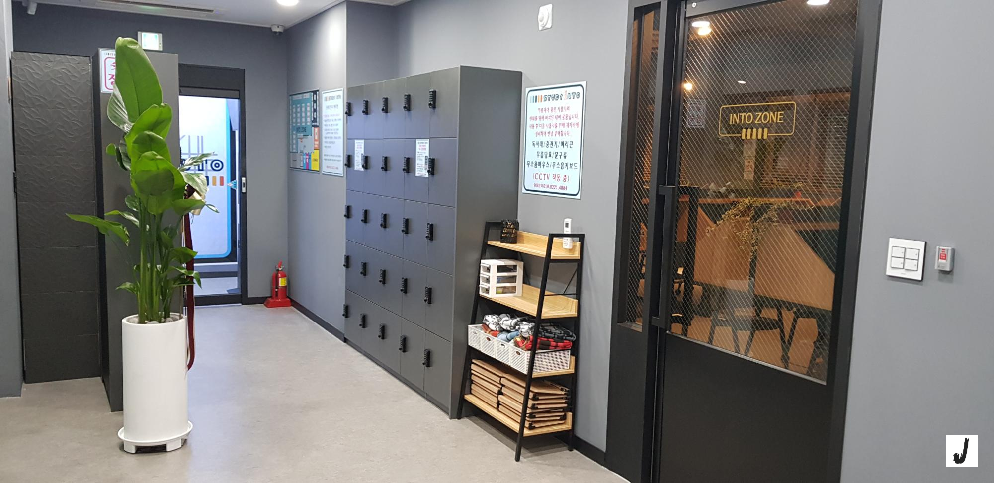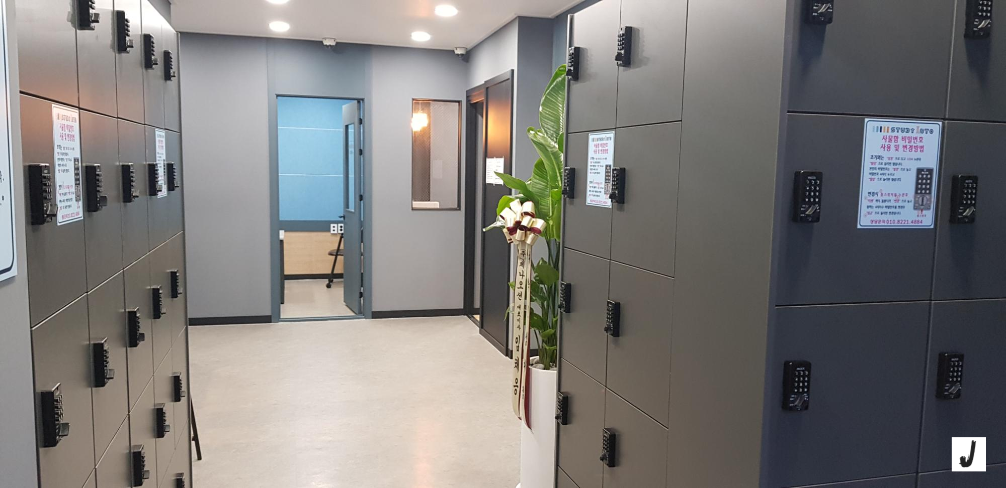 입구에 들어가면 로비가 나오는데요. 다른 스터디카페와 달리 복도가 넓어서 답답하지 않았어요. 다른 곳에서는 입구에 들어가자마자 공부하는 곳이어서 숨죽이면서 들어갔던 기억들이 많은데, 이곳에서는 그런 부담감이 적었어요. 그리고 아래 사진 보이시나요? 사물함마저도 깨끗하고 얼른 사용해보고 싶더라고요.