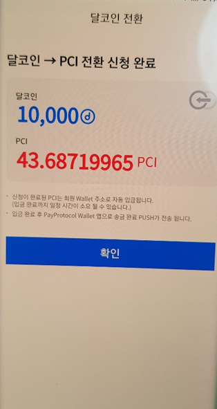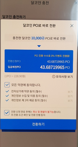 결제를 하게되면 바로 페이코인PCI로 전환이됩니다.