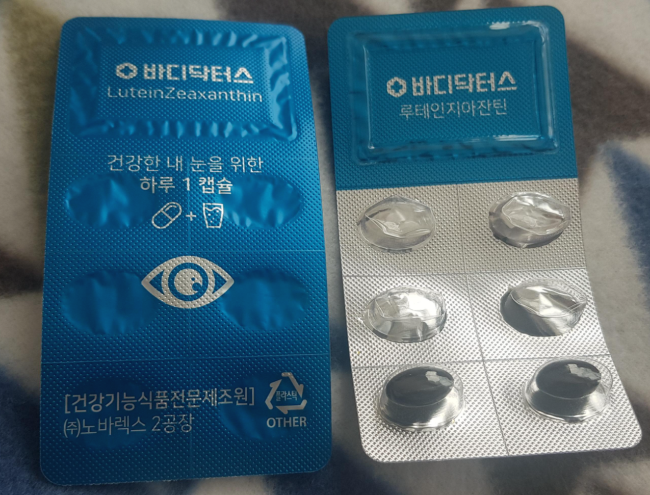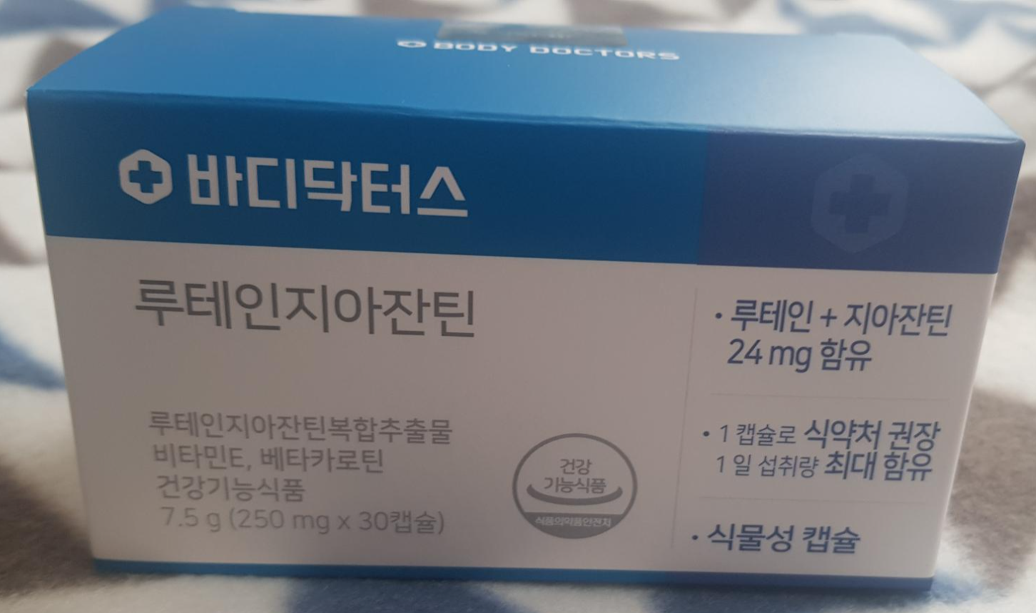 처음 루테인을 구매하는 만큼 신중에 신중을 기해 알아보고 구매했는데요. 그 중 바디닥터스에서 나온 루테인지아잔틴을 구매했습니다. 성분을 하나하나 따져가며 구매한건 아니었지만 제일 중요하게 생각한 식약처에서 인증한 제품인지, 구매 후기는 많은지, 식물성 성분인지. 이렇게 3가지를 고려해보고 구매하게됬습니다.