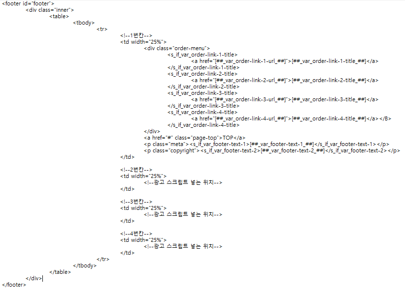 바로 footer 안에 TABLE을 구성해주는겁니다.