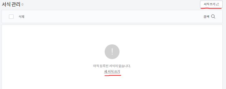 서식 쓰기를 눌러주시면 글쓰기와 비슷한 화면이 나옵니다.