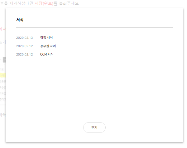 제가 쓰는 서식 사진입니다. 서식에서 선택해주시면 글쓰기 안으로 서식이 들어갑니다.