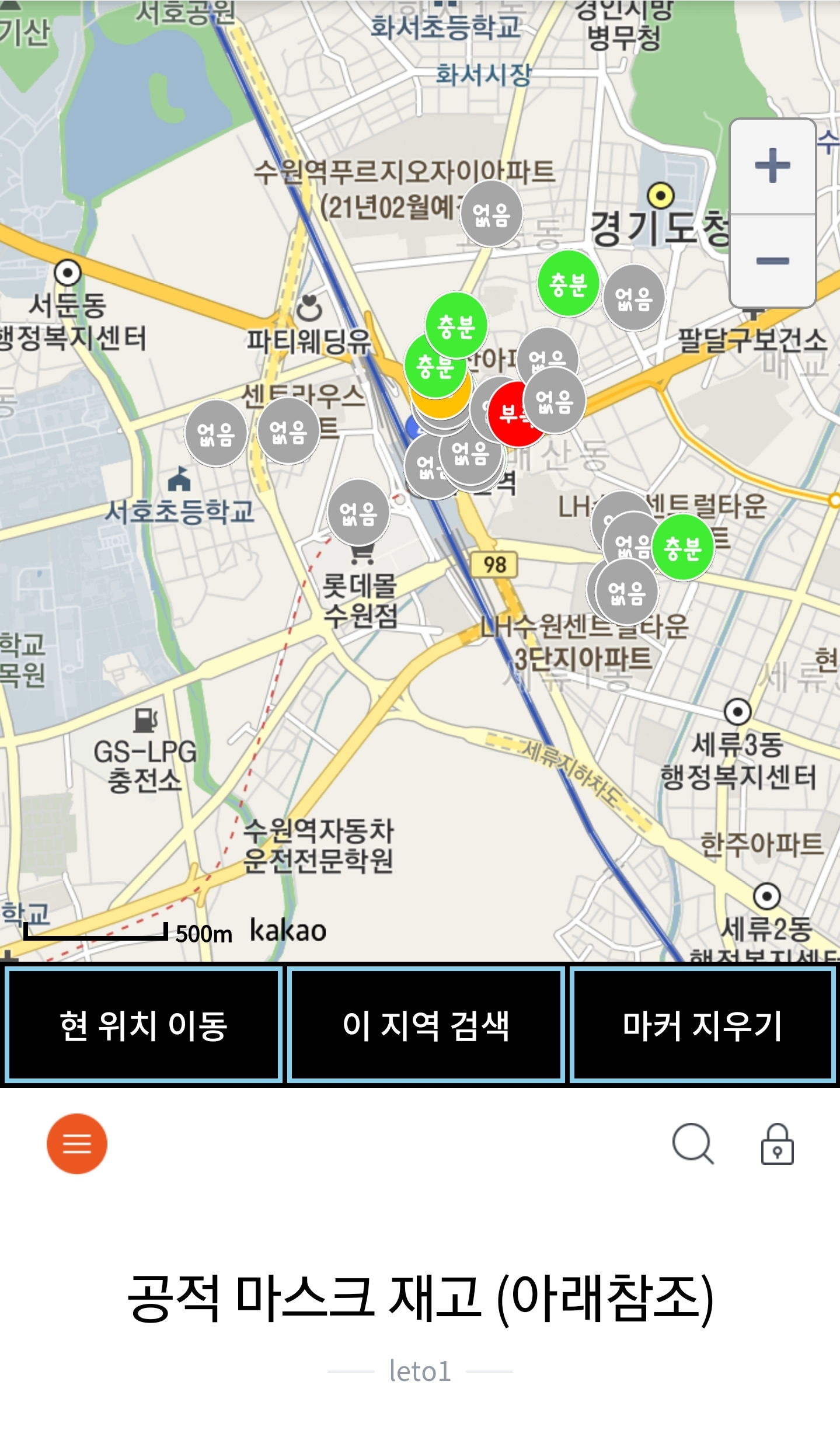 안녕하세요 공공 마스크 알리미 재고 지도 마스크오디입니다.