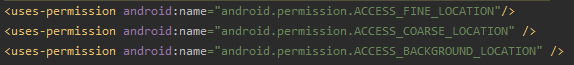 <uses-permission android:name="android.permission.ACCESS_BACKGROUND_LOCATION" />