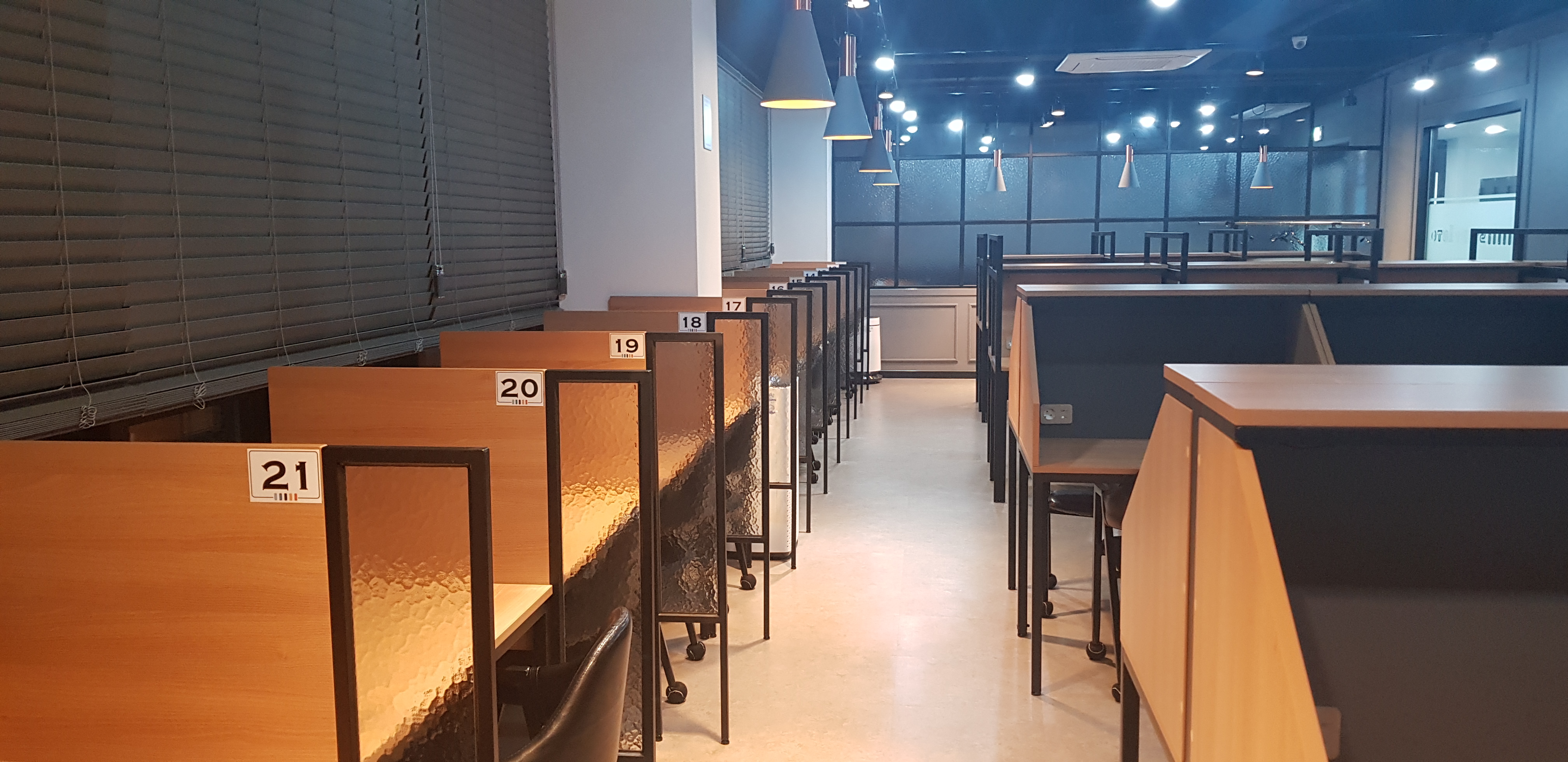 먼저 다른 스터디카페와 비교를 하기에 앞서 새로 신축한 건물로 모든 시설이 깨끗하고 깔끔합니다. 화장실이 깨끗했던 점이 정말 좋았어요. 다른 곳에 위치한 스터디카페들은 화장실 사용이 꺼림칙하여 불편했는데, 오랜 시간 공부하는 동안에 깨끗한 화장실을 사용한다는 점이 가장 좋았습니다. (저만 이렇게 생각하나요..?) 다음은 공부를 하는 스터디카페 내부입니다.