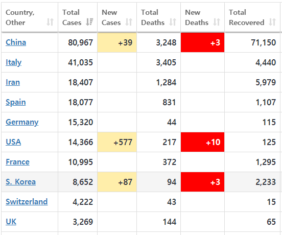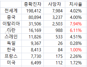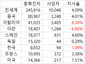 2020/03/18 - [정보/알쓸신잡] - [정보] 전 세계 코로나19 치사율 비교