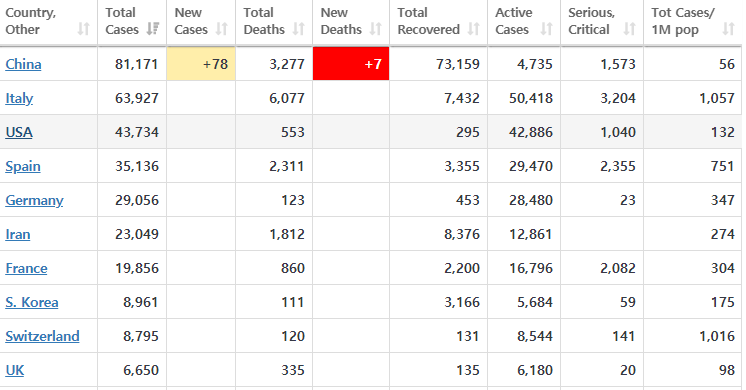 2020/03/28 - [정보/알쓸신잡] - [정보] 전 세계 코로나19 현황과 치명률/치사율 비교 2020.03.28.